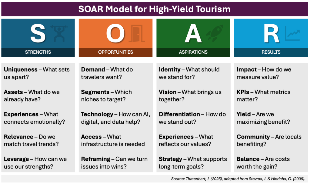 STAY TUNED for my upcoming book that will leverage my adapted SOAR Framework for High-Yield Tourism to foster destination resilience: